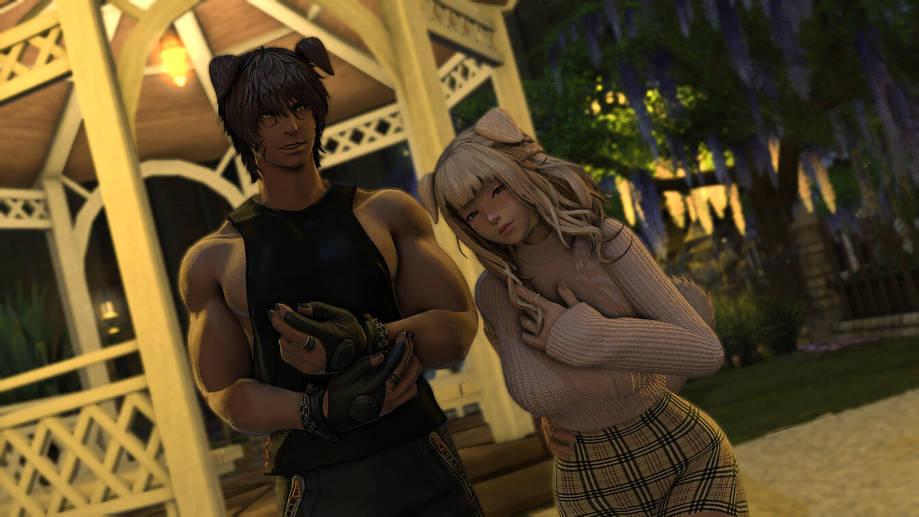 Bio: An ancient ancestor to the modern Miqo'te, Jungle Catte was found by Budjek frozen in a block of ice that washed ashore. By sheer luck he lived through this and was hired as muscle in Ayame by Rosalynn to give him propose in this modern time.